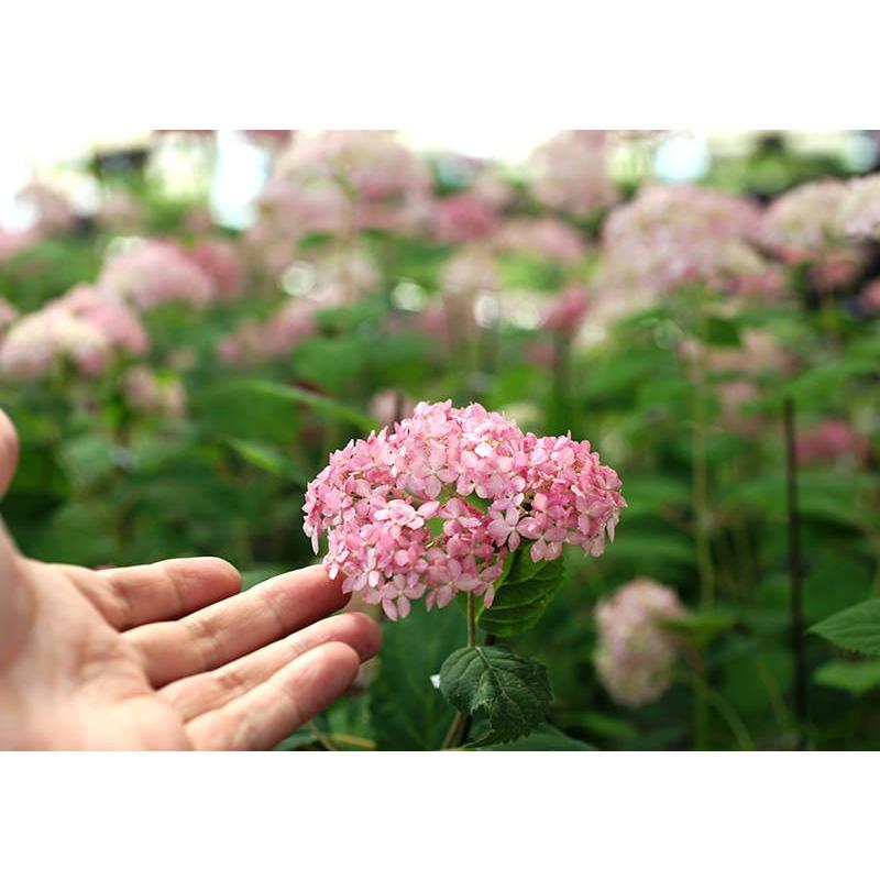 アジサイの種類4アナベルピンクアナベル アナベルの仲間は、 耐寒性、耐暑性が高く、 今年伸びた枝の先に花を咲かせるのが特徴で その年に伸びた枝の先に花を咲かせるアジサイで『 新枝咲き 』というタイプです。